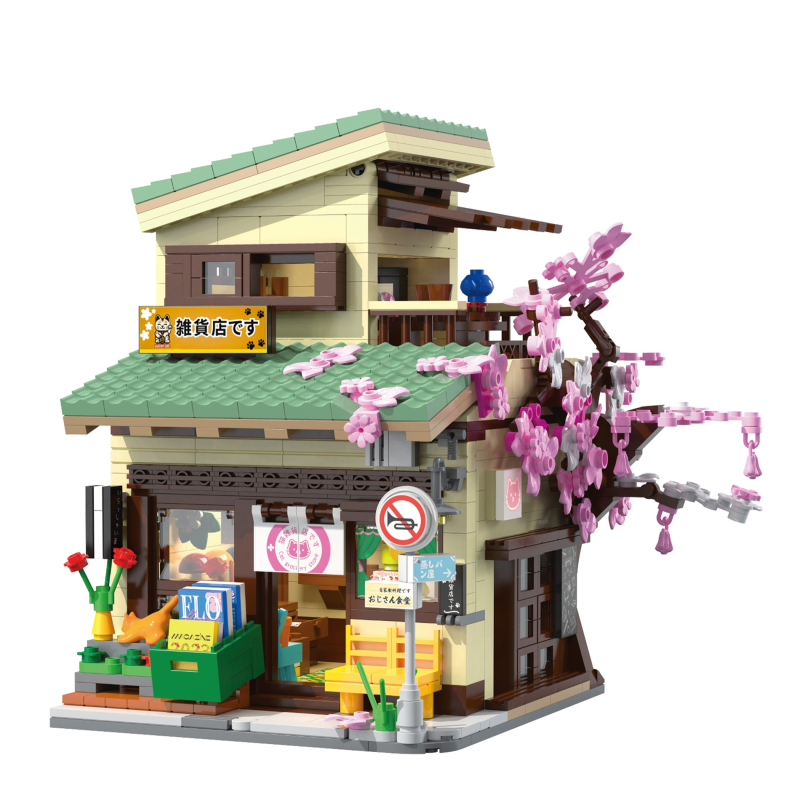 Prisrčna dvonadstropna japonska trgovinica z bogatimi zunanjimi in notranjimi detajli: cvetoča češnja, klopca in prometne table, v izložbi “lucky cat”, v mansardi pa počivalni kotiček z vlečnim nadstreškom in ribnikom. Konstrukcija je modularna z odpirajočo stransko steno za lahek dostop do interierja, priložen je tudi USB svetlobni komplet z do 8 efekti za čudovit nočni prikaz.