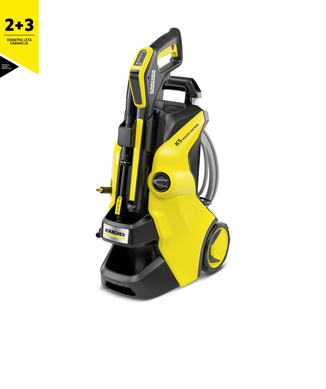 Z visokotlačnim čistilnikom K 5 Power Control Flex lahko vsako površino očistite s pravim tlakom. Svetovalec v aplikaciji Kärcher Home & Garden, pomaga uporabniku najti ustrezen tlak s praktičnimi nasveti za vsako situacijo čiščenja in opravilo čiščenja – za popolne rezultate. Za maksimalen nadzor je mogoče nivo tlaka enostavno prilagoditi z obračanjem pršilne cevi ali preveriti na sprožilni pištoli G 160 Q Power Control. Visokotlačni čistilnik navdušuje tudi s sistemom detergentov Kärcher Plug ‘n’ Clean za enostavno menjavo detergentov, visokotlačno cevjo PremiumFlex za dodatno udobje, visokokakovostnim aluminijastim teleskopskim ročajem za enostaven transport in sistemom Quick Connect za prihranek časa in truda pri klikanju visokotlačne cevi v napravo in iz nje ter pištolo za sprožitev, kot tudi položaj za parkiranje, da zagotovite dostop do dodatkov v vsakem trenutku.