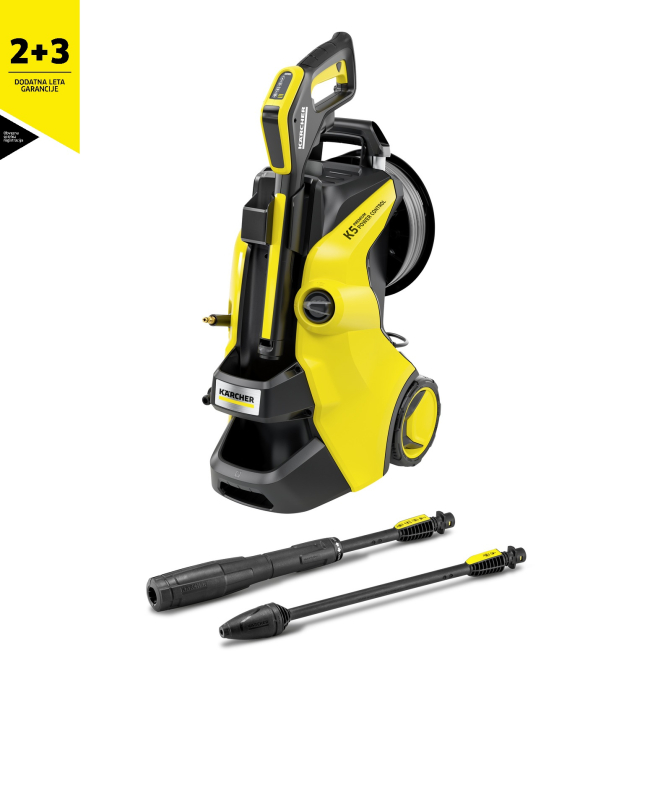 Z visokotlačnim čistilnikom K 5 Premium Power Control Flex je mogoče vsako površino očistiti s pravim tlakom. Svetovalec v aplikaciji Kärcher Home & Garden, pomaga uporabniku najti ustrezen tlak s praktičnimi nasveti za vsako situacijo čiščenja in opravilo čiščenja – za popolne rezultate. Za maksimalen nadzor je mogoče nivo tlaka enostavno prilagoditi z obračanjem pršilne cevi ali preveriti na sprožilni pištoli G 160 Q Power Control. Visokotlačni čistilnik navdušuje tudi s sistemom detergentov Kärcher Plug ‘n’ Clean za enostavno menjavo detergentov, visokotlačno cevjo PremiumFlex za dodatno udobje, visokokakovostnim aluminijastim teleskopskim ročajem za enostaven transport in sistemom Quick Connect za prihranek časa in truda pri vstavljanje visokotlačne cevi v napravo in iz nje ter pištolo za sprožitev, kot tudi položaj za parkiranje, da zagotovite dostop do dodatkov v vsakem trenutku. Rokovanje je zelo preprosto zahvaljujoč priročnemu kolutu za cev.