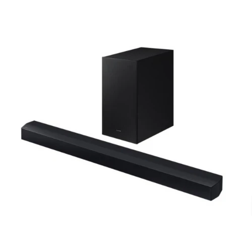 Soundbar zvočnik, oblikovan za maksimalno zvočno potopitev, ima tri vrste zvočnikov, ki zvok usmerjajo naprej, na strani in navzgor ter so strateško vgrajeni v ohišje.