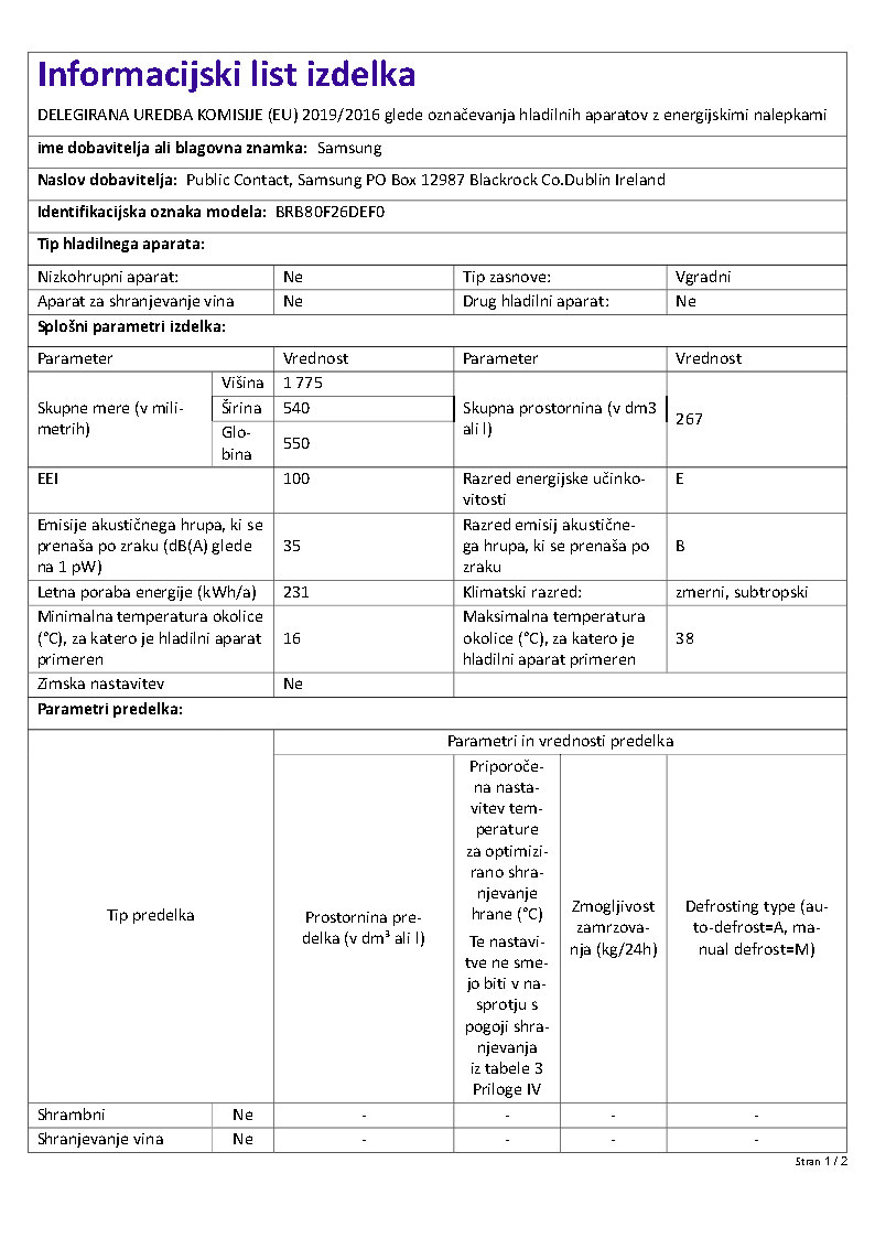 Samsung BRB80F Mono BRB70F26CEF0EF – Vgradni hladilnik z zamrzovalnikom spodaj