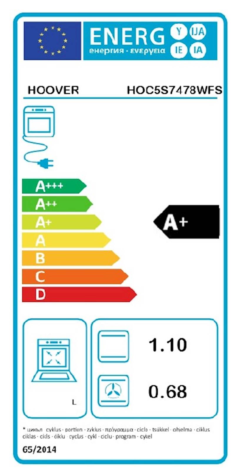 Vgradna pečica HOOVER HOC5S7478WFS, črna, A+