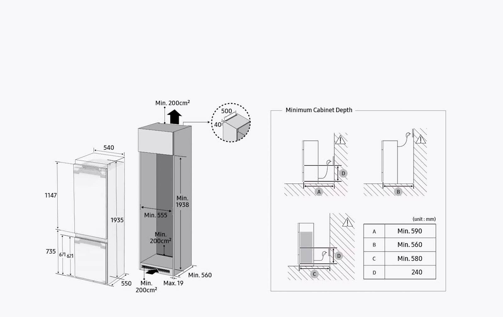 Vgradni hlad. Samsung BRB80F30AES0EO, 193,5 cm, Twin Cooling