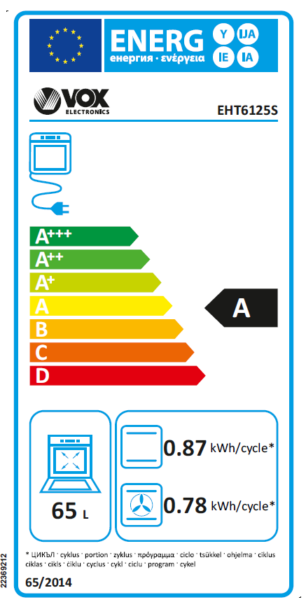 – Prostornina pečice: 65 l