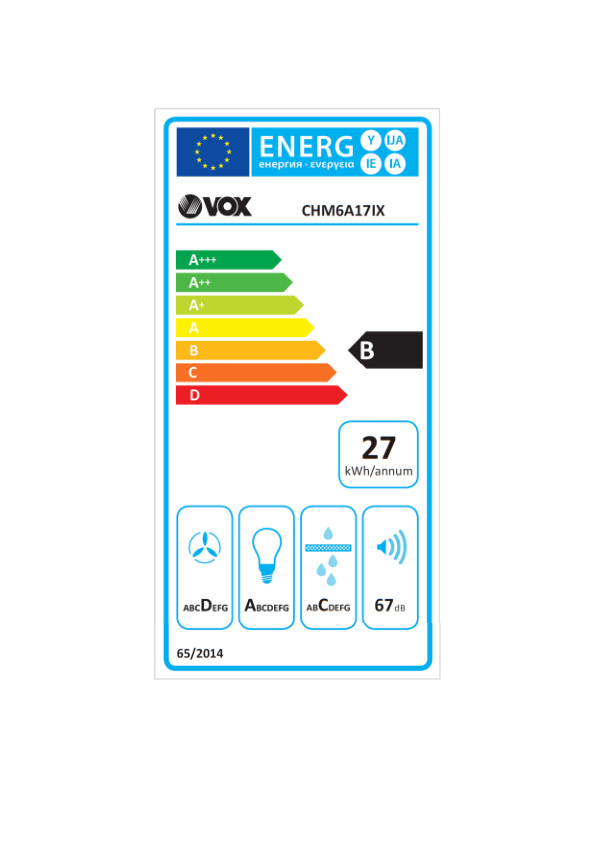 VOX kuhinjska napa TRD6F49IX [B, 3 hitrosti, pret: max. 200m3, inox]