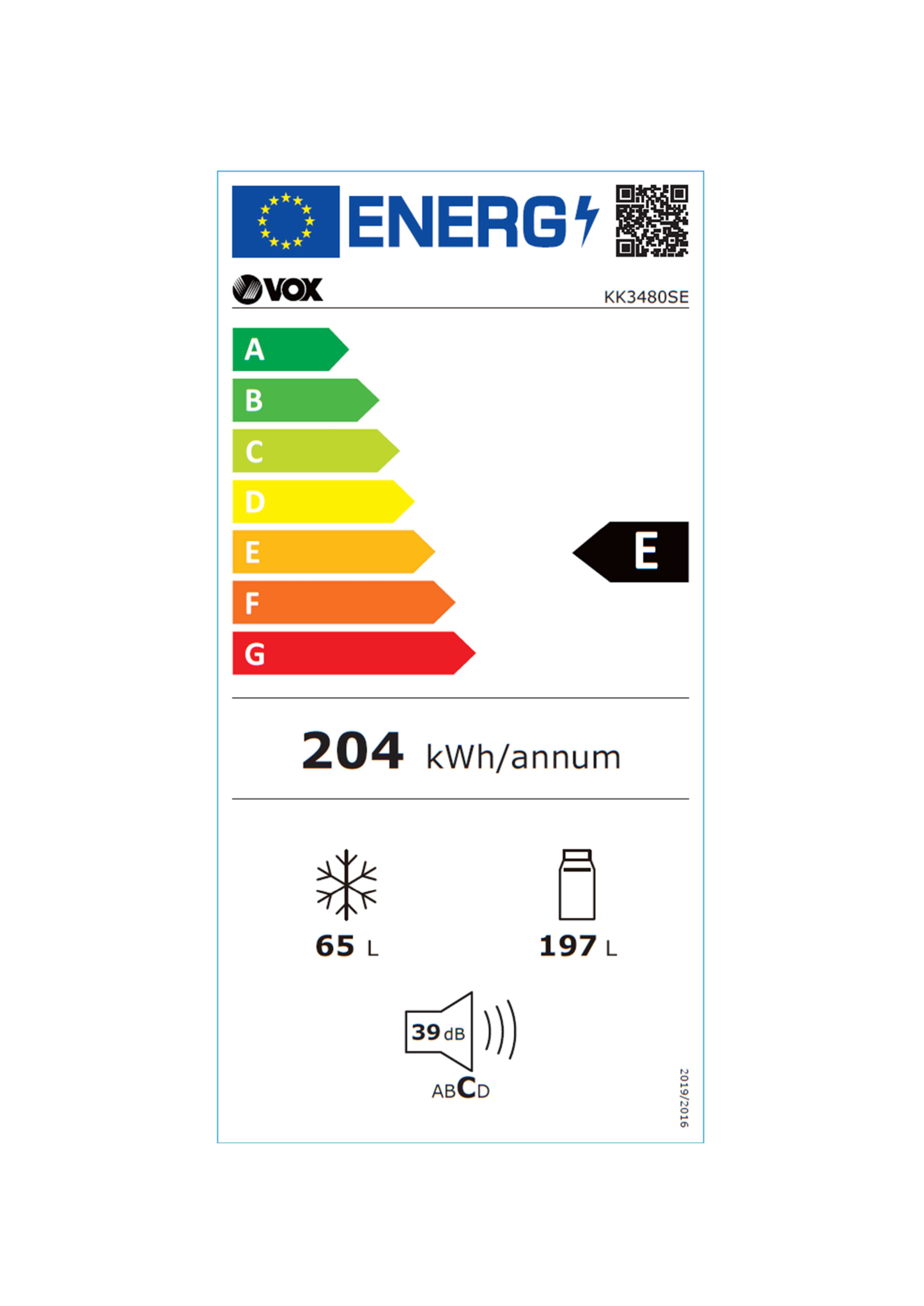 VOX Kombinirani hladilnik KK 3400S E [E, H:204 l, Z:84 l, LessFrost, srebrn]