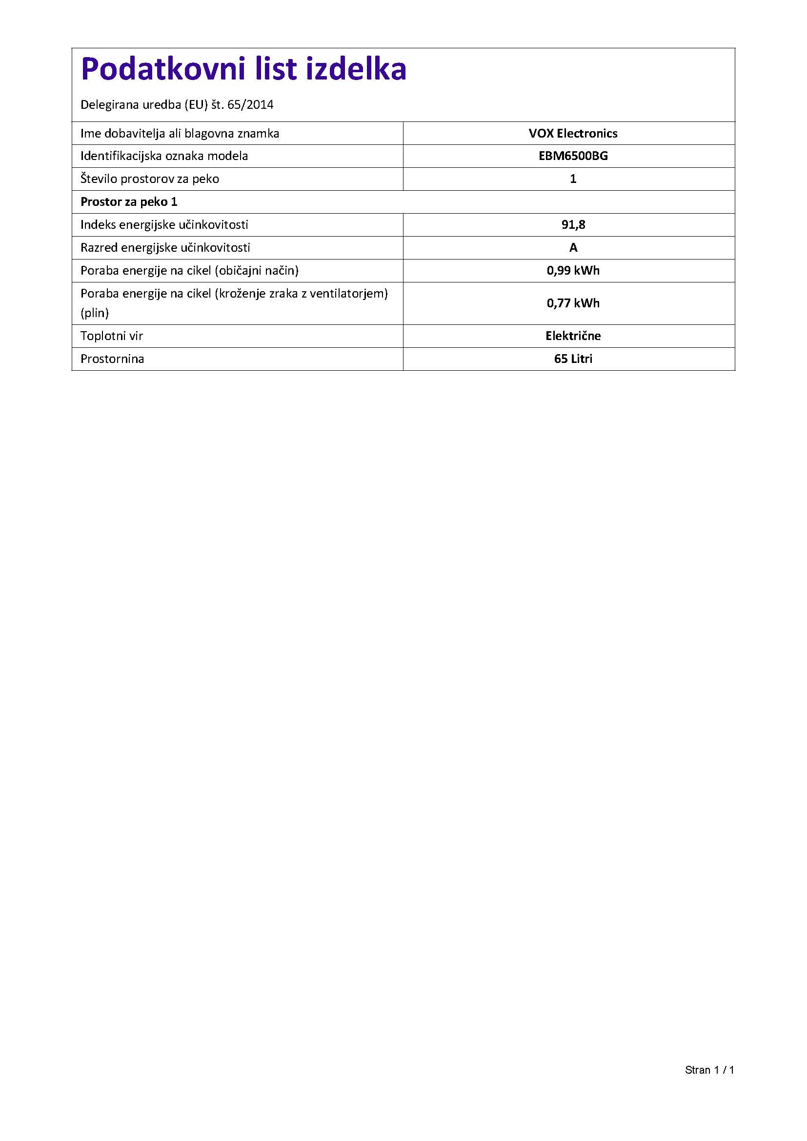 VOX vgradna pečica SBM 6510X3D [A, 65 l, 9+3 prog., SteamBase, 3D Cook]
