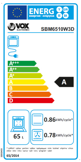 VOX vgradna pečica SBM 6510B3D [A, 65 l, 9+3 prog., SteamBase, 3D Cook]